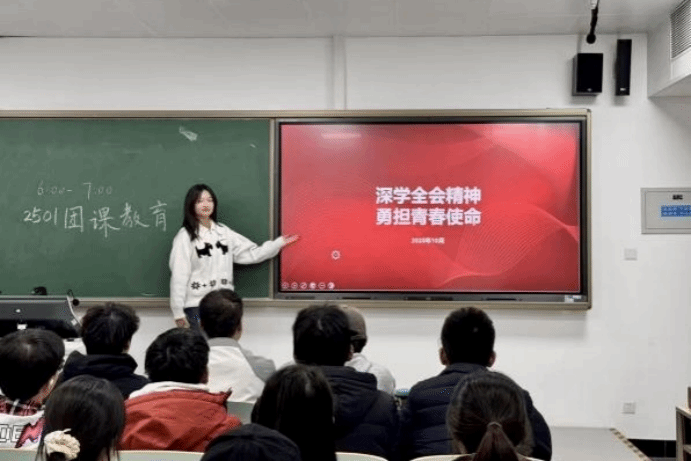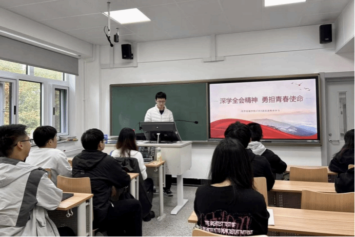 公共管理系各团支部书记结合丰富案例和详实数据,带领同学们系统学习了全会精神的核心要义。公管团员们联系学习生活实际,踊跃交流心得体会,立志成为全会精神积极的传播者和践行者,将国家宏伟目标转化为个人成长的具体规划,以扎实行动诠释青春使命。