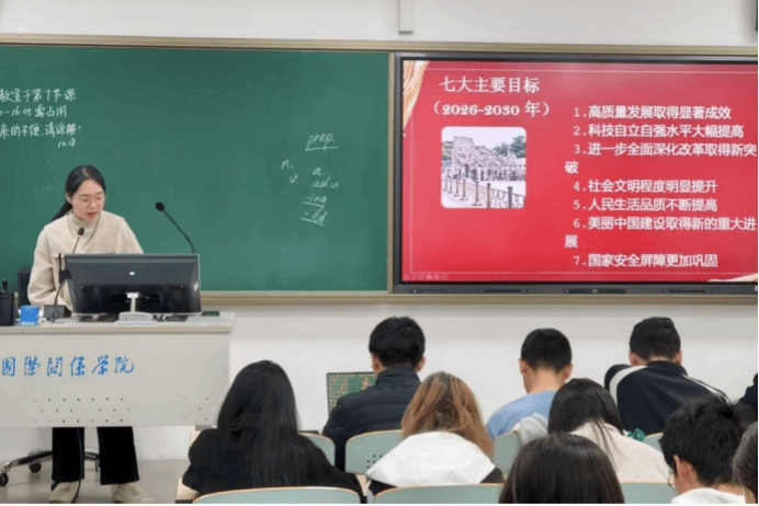 国际政治系各团支部通过理论讲解、视频学习等多种方式,结合思维导图等特色形式,深入学习党的二十届四中全会精神。活动聚焦全会核心内容和“十五五”规划要点,各团支部书记立足专业背景,解读了“高质量发展”等关键议题。同学们积极参与,深刻认识到个人成长与国家发展的紧密联系,增强了历史使命感,坚定了以专业能力践行全会精神、为强国建设和民族复兴贡献青春力量的决心。