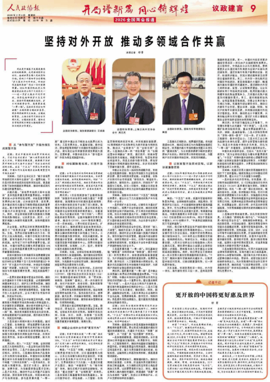 日前,全国政协委员、我院陶坚教授接受了《人民政协报》《中国日报》《经济日报》《羊城晚报》、中国新闻社以及长安杂志社的专访,围绕进一步扩大高水平对外开放、中美关系以及国际时事热点进行交流。
